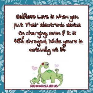 Selfless Love is when you put their electronic device on charging even when it is at 45 %, while yours is actually at 3%