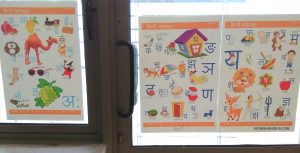 I taped the posters on the doors in the area that we frequently use. These were single posters so we taped two on one single door. The Hindi posters were a set of 3 so I chose to stick it on our glass door and window in the room. But my husband came up with a brilliant improvisation by sticking it from the outside so as to make it clearly visible on the inside. This made it safe from my little monkeys without costing us on the clarity in view.  I dearly Thank Ekdali for sharing these posters with me.
