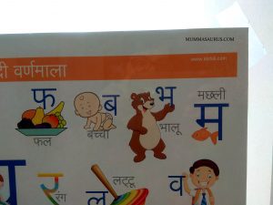 It had been long since I wanted to introduce the Hindi Varnamala or the Hindi Alphabet to my kids. This set of 3 educational posters made it very convenient. We read it out in the typical Hindi Class way a few times for fun. The kids are already acquainted with some Hindi names of everyday items, which we usually speak about in English. They take interest and point out to some items randomly through the day, as and when they lay their eyes on it.