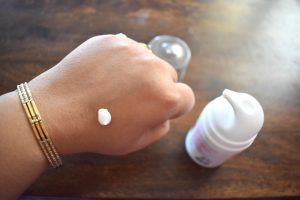 The cream is lotion like – white in color. The texture is smooth and soft. It absorbs quickly into the skin.