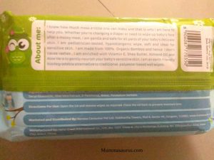 - The wipes are multipurpose – they can be used to clean up baby’s hands, face and other parts, in case a clean up is required and water is not accessible. I also use them as my make up remover. It is gently and the essential oils in the wipes make removing make up a very easy job.