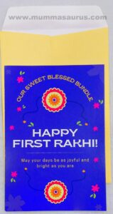 The Zappy Box Rakhi bundle, and the MOM cap, felt like a little nudge from the universe: you were part of this story from the beginning—and you still are. The gift helped me etch this moment in to memories for a life time – her first Rakhi will only come once!